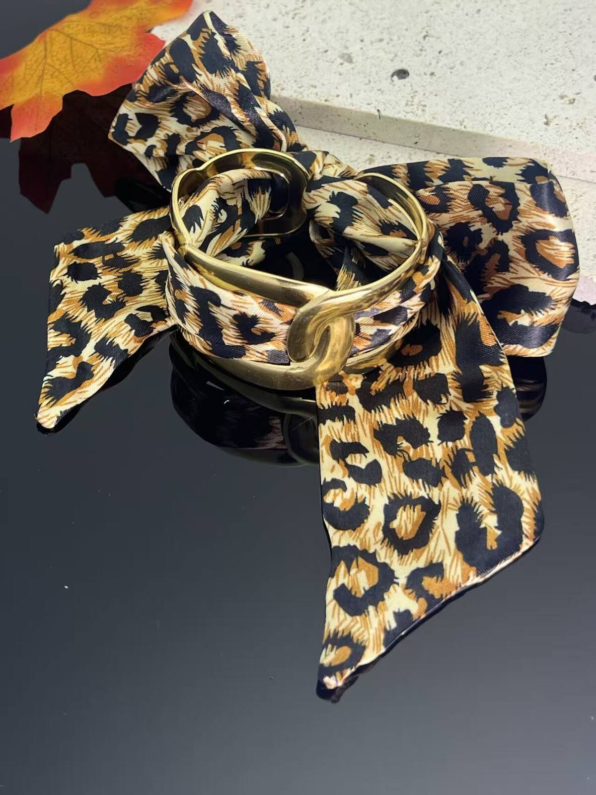 Dieses goldene Manschettenarmband aus Edelstahl ist der perfekte Begleiter für dich, wenn du Eleganz und einen Hauch Wildheit in deinem Look vereinen möchtest. Das einzigartige Design kombiniert das robuste, goldene Metall mit einem feinen Leopardenmusterband, das zu einer charmanten Schleife gebunden ist. Diese Verbindung aus femininer Anmut und wildem Charakter macht das Armband zu einem echten Blickfang.