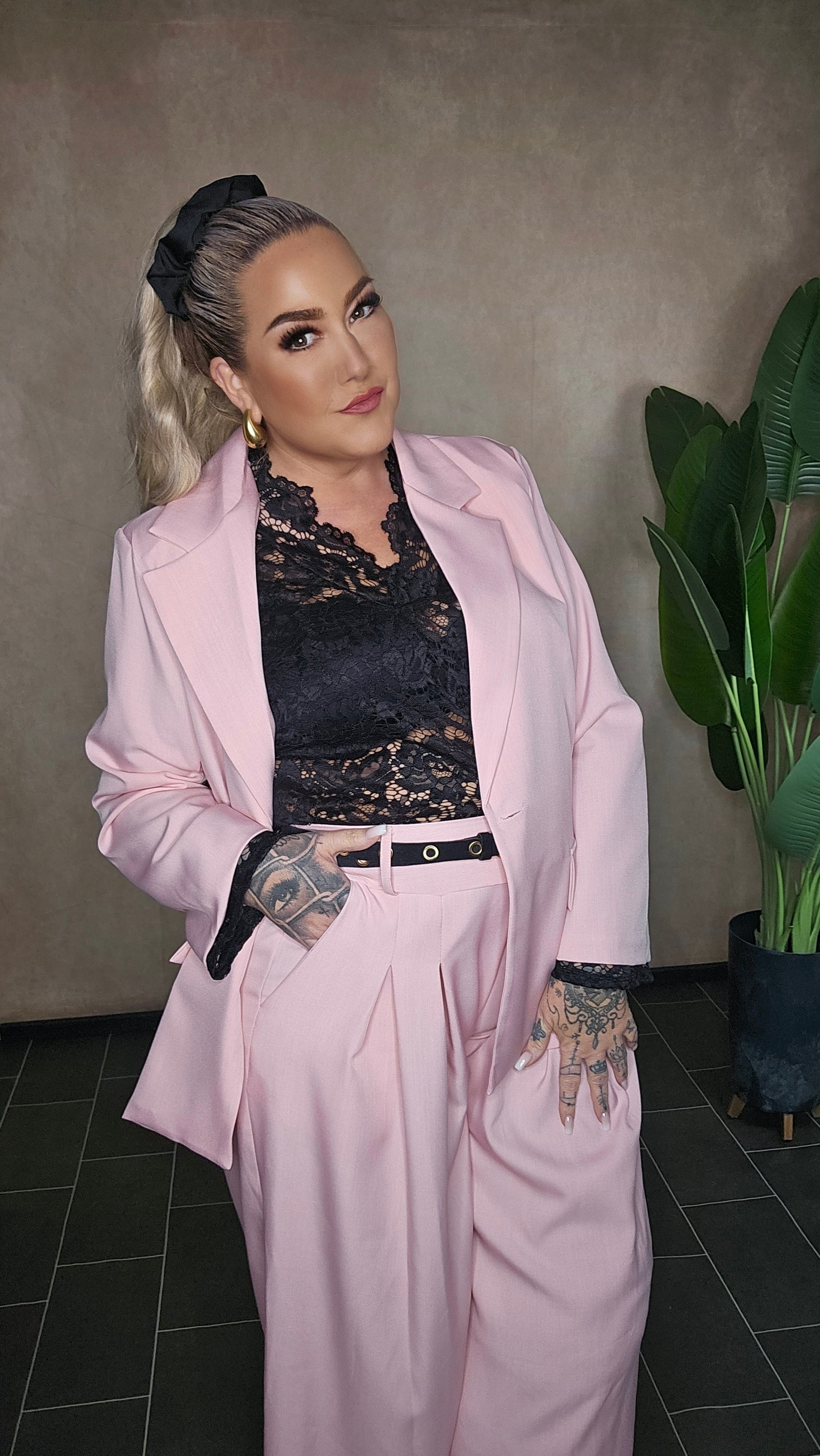 Dieser traumhafte Blazer "Rosaly" in zartem Rosa ist dein neuer Power-Look für jeden Anlass! Der taillierte Schnitt mit Schulterpolstern verleiht dir eine selbstbewusste Silhouette, während die weiche Qualität für höchsten Tragekomfort sorgt. Kombiniere ihn zur passenden Hose für einen eleganten Hosenanzug-Look oder trage ihn lässig über einem Spitzentop zur Jeans – dieser Blazer macht dich zur absoluten Powerfrau!