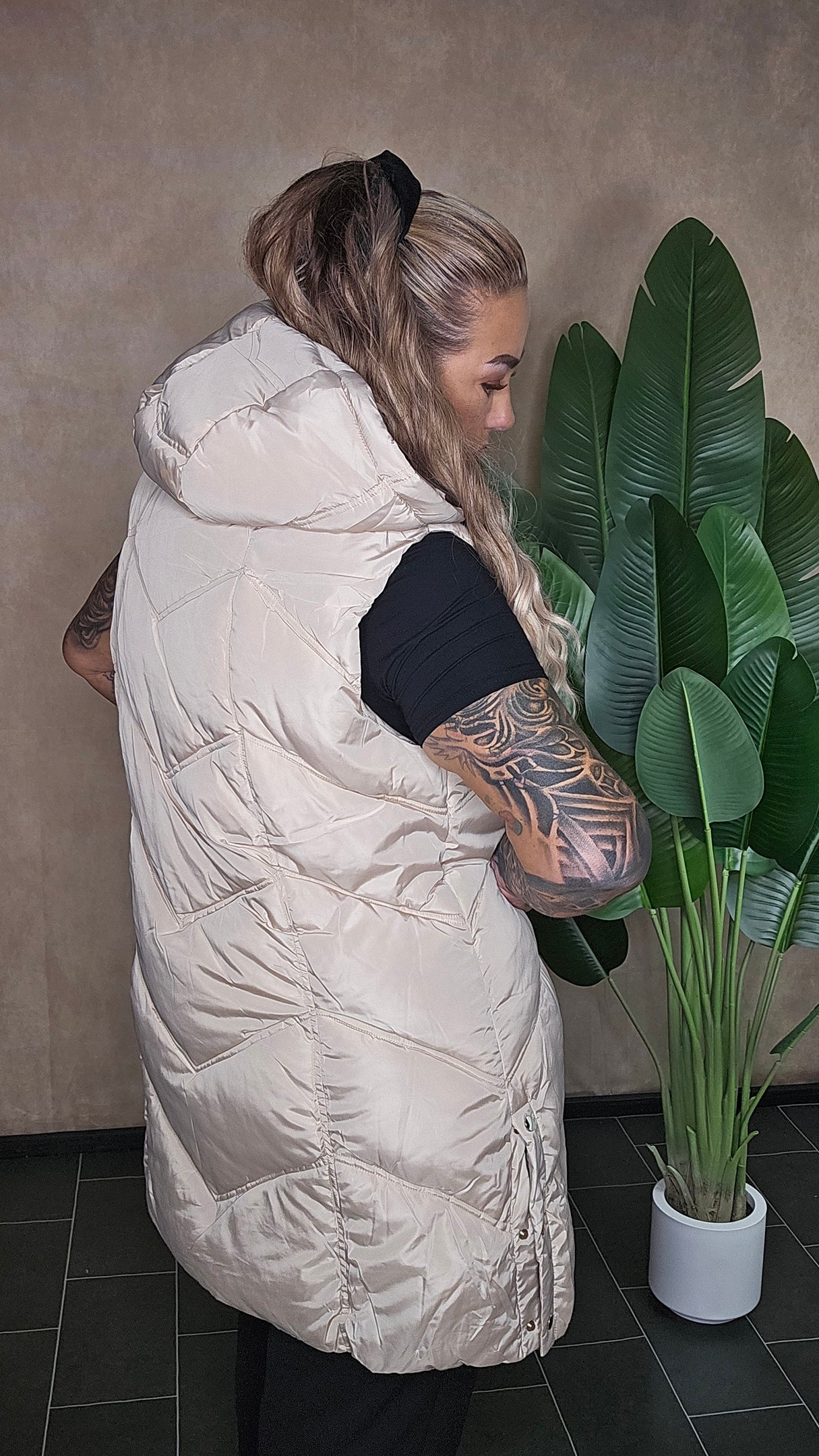Gefertigt aus leichtem, bequemem Stoff, ist diese Weste den ganzen Tag über angenehm zu tragen. Der lange Schnitt bietet Dir nicht nur zusätzlichen Schutz vor Wind und Kälte, sondern garantiert auch maximale Bewegungsfreiheit – ideal für aktive Tage oder entspannte Momente.