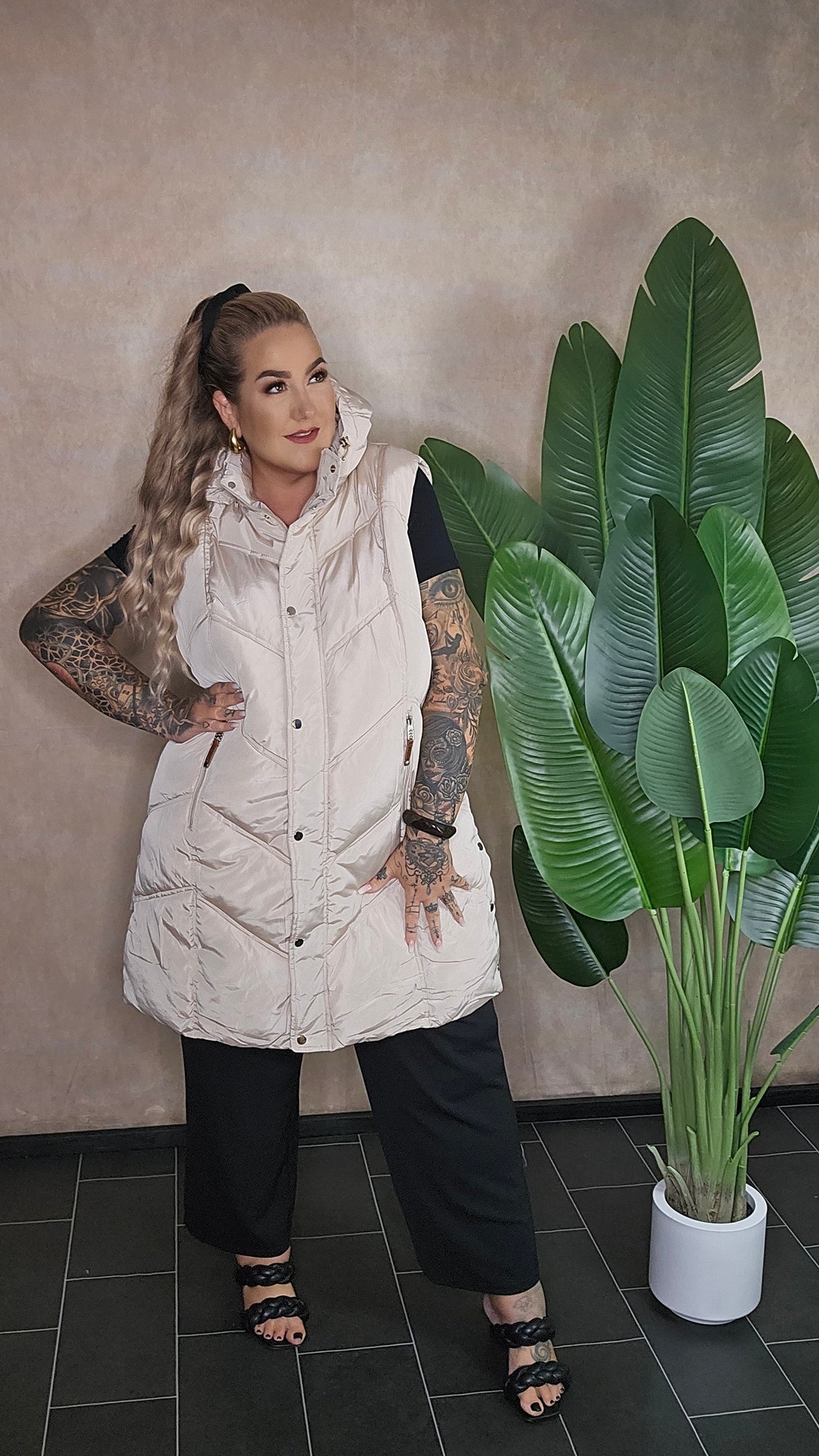 Entdecke Dein vielseitiges Essential für die Übergangszeit und kühle Tage! Diese ärmellose Steppweste ist der perfekte Begleiter, um Deinen Outfits einen praktischen und modernen Stil zu verleihen, ohne auf Komfort verzichten zu müssen. Sie ist Dein unkompliziertes Styling-Wunder, das Du immer wieder neu kombinieren kannst.