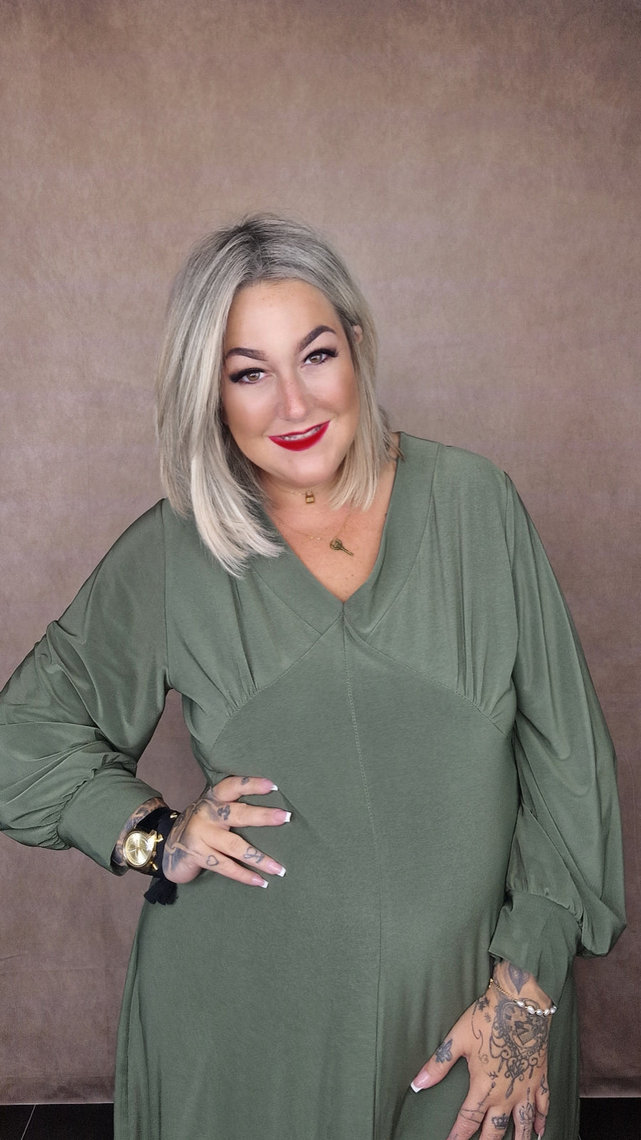 Maximiere deine Herbst/Winter-Garderobe mit dem Kleid "Adele", einem Kombinationswunder, das in Khaki und Schwarz erhältlich ist! Aus einem fließenden Stoff gefertigt, umschmeichelt es deine Kurven und bietet perfektes Styling in Plussize - mit oder ohne Gürtel. Verwandle jeden Tag in ein Statement-Outfit! ♥