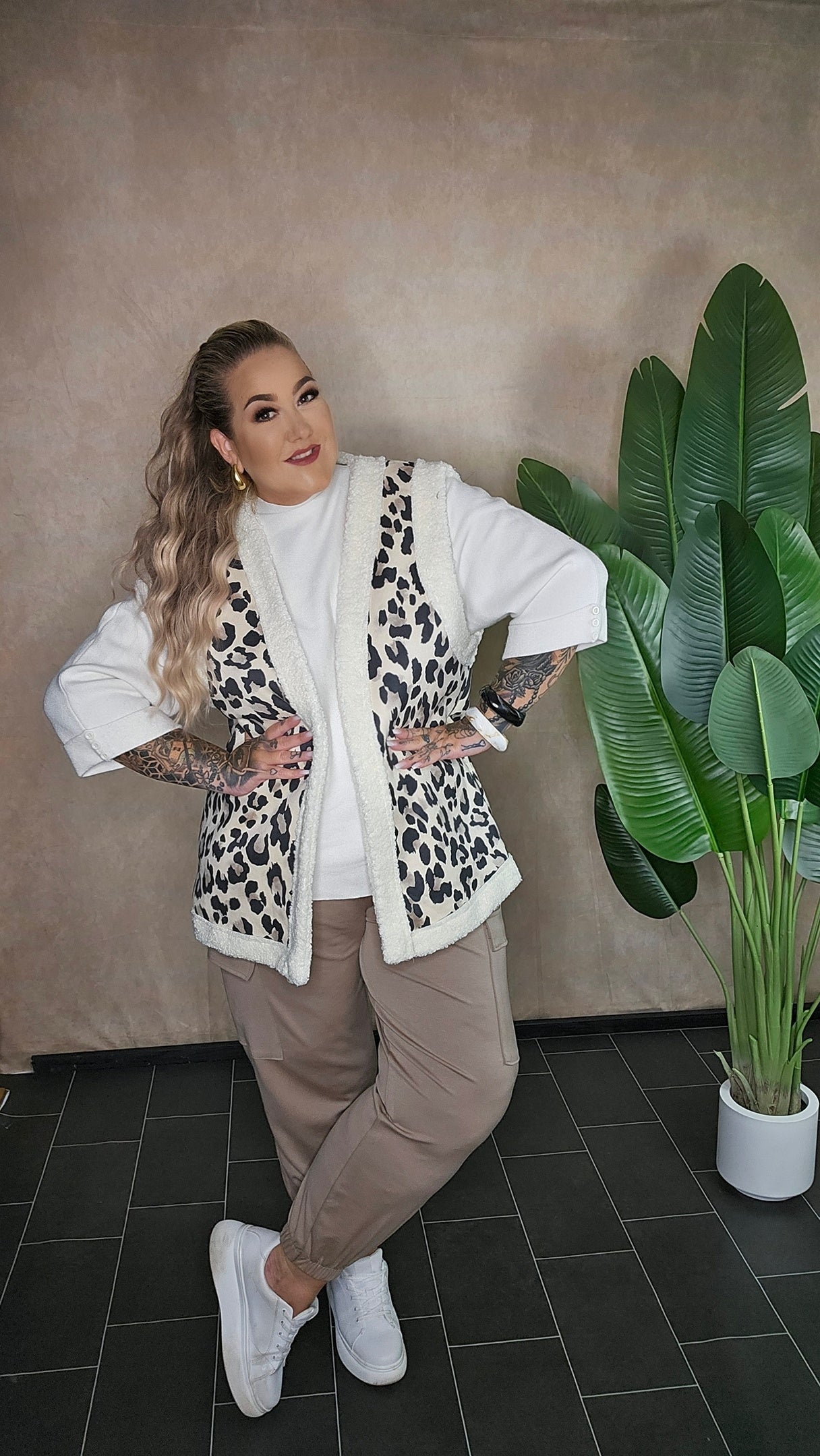 Der trendige Leoparden-Look verleiht deinem Outfit sofort eine wilde und moderne Note. Dank des lässigen Oversize-Schnitts kannst du die Weste perfekt über dicke Pullover, Longsleeves oder sogar schmale Jacken ziehen und so einen tollen Lagenlook kreieren.