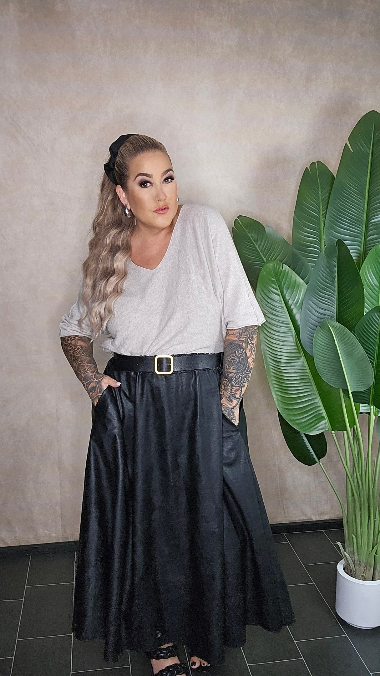 Der Herbst ruft – und dieser Lederrock ist die perfekte Antwort! Speziell für Curvy-Figuren entworfen, schmiegt er sich deiner Silhouette an und betont deine Kurven auf die schönste Art und Weise.