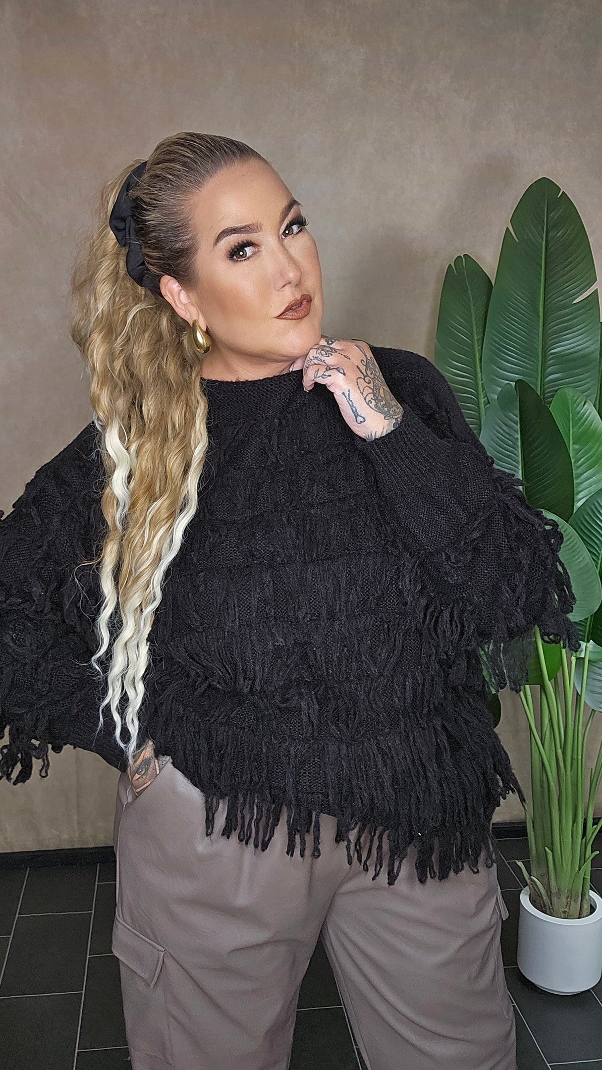 Tauch ein in puren Komfort und zeitlose Eleganz mit unserem oversize geschnittenen Pullover in tiefem Schwarz. Dieses einzigartige Stück ist mehr als nur ein Basic – es ist ein Statement für Deinen entspannten Stil und Deine Gemütlichkeit.