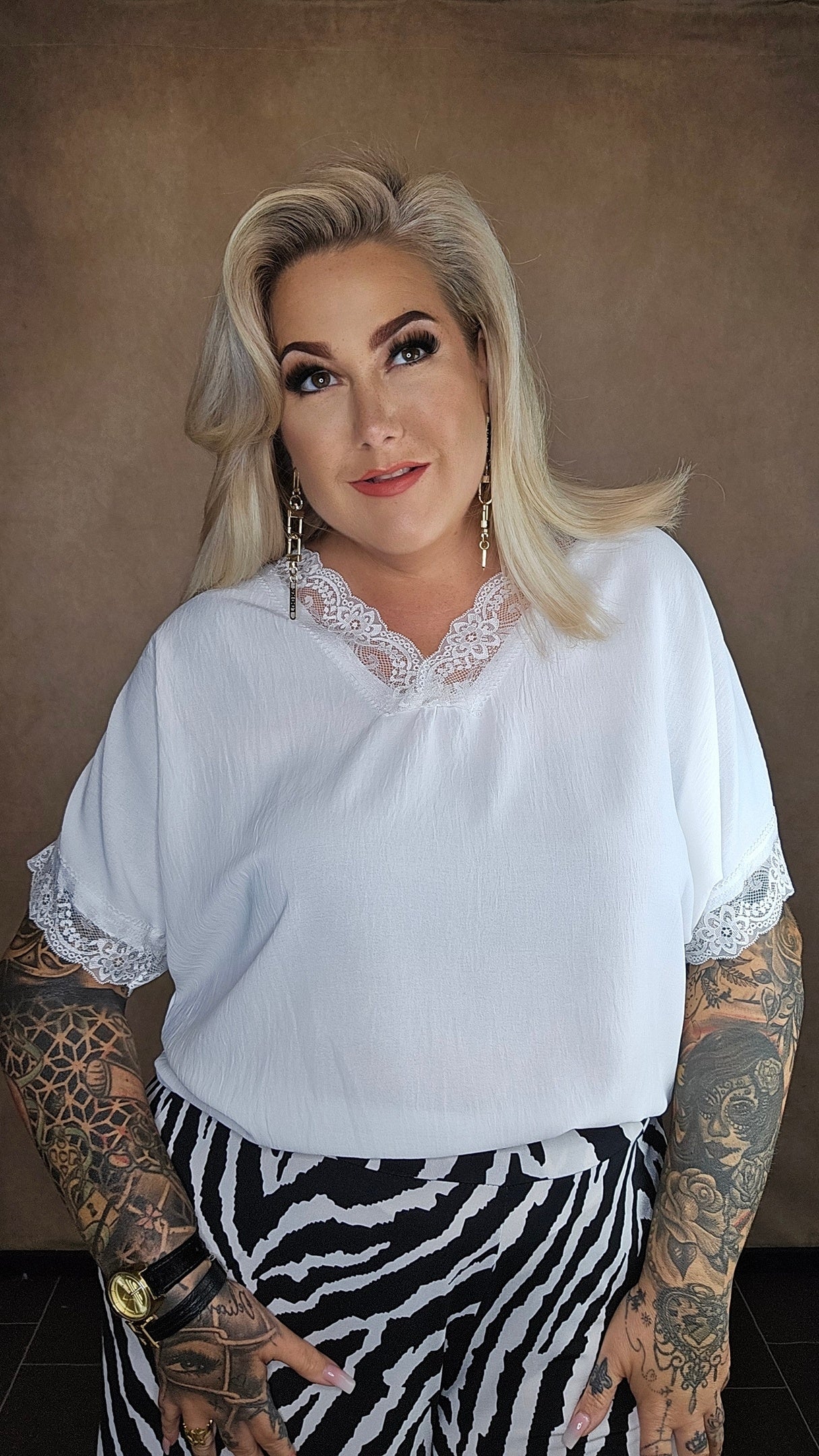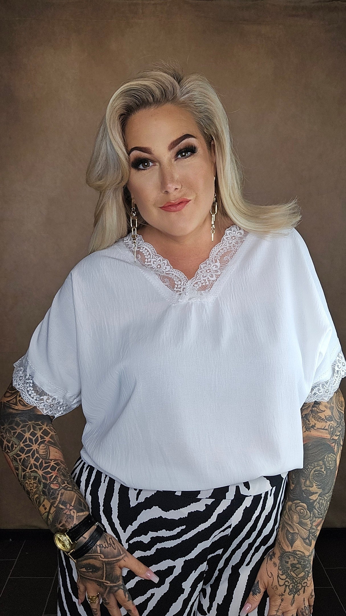 Verleihe deiner Garderobe mit dem Spitzen Shirt "Malou" einen edlen Touch. Das atemberaubende Spitzendesign in brillantem Weißton schmeichelt deiner Figur und kreiert den perfekten Sommer-Look. Ein tolles Kombiteil für jeden Anlass. Hol dir jetzt dieses perfekte Must-Have-Stück!